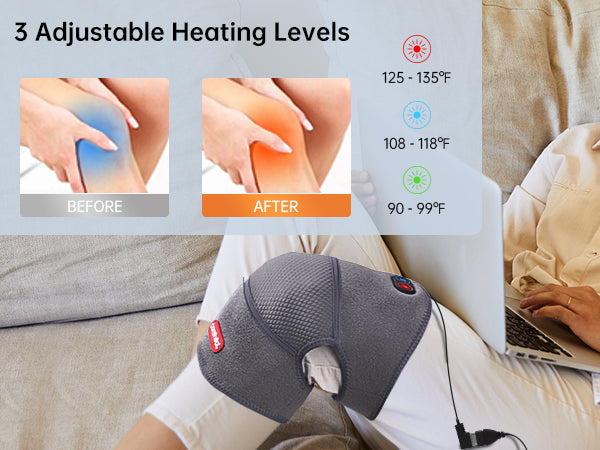 Disfruta de 3 niveles de temperatura (90 a 135 °F) para calmar tus rodillas y mejorar la circulación sanguínea. El chip inteligente de protección contra sobrecalentamiento asegura un uso estable y seguro.